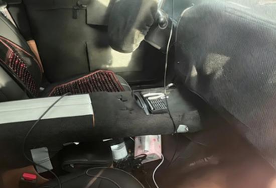 虽然车内被严密的伪装包裹起来,但是从整体轮廓上依然能够判断,其整体设计风格与smart精灵#5十分接近,预计会配备全液晶仪表以及双联屏。后排空间表现中规中矩,座椅上疑似摆放的是门板部件,拥有相当厚实的隔音材料,静谧性值得期待。