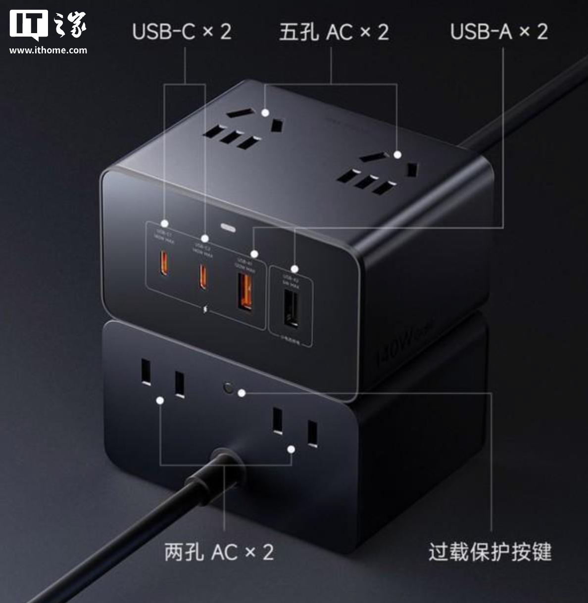IT之家 1 月 8 日消息,小米旗下“小米桌面充电站 140W”现已在有品开启众筹,该产品采用 2C+2A+4AC 设计,建议零售价 299 元,众筹价 249 元。IT之家附商品地址(点此访问)。