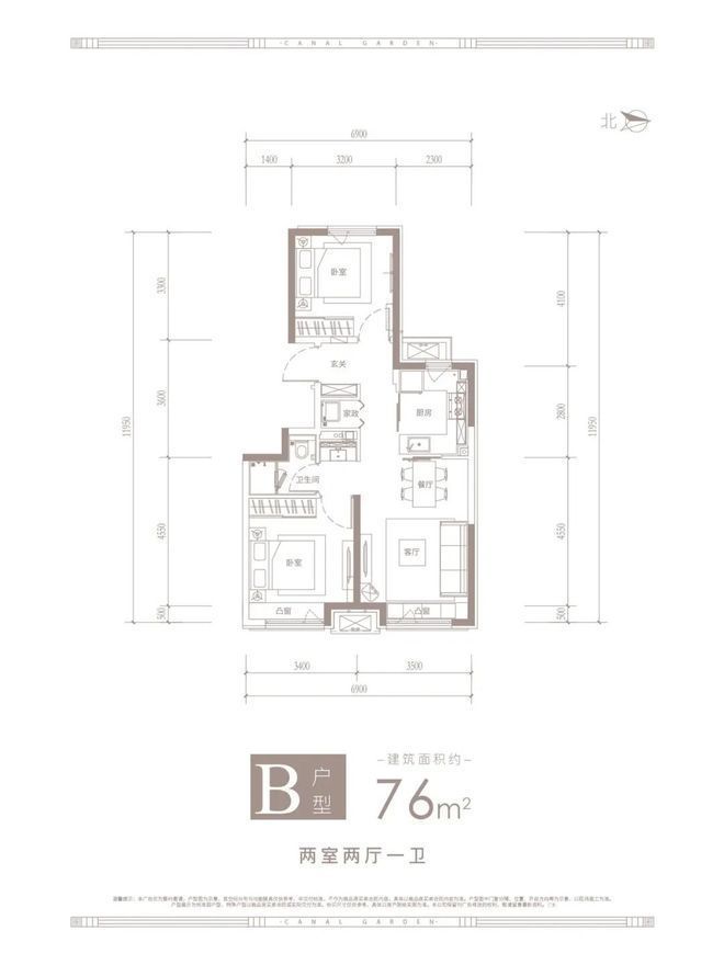 B 户型:79 平米东西朝向两居室