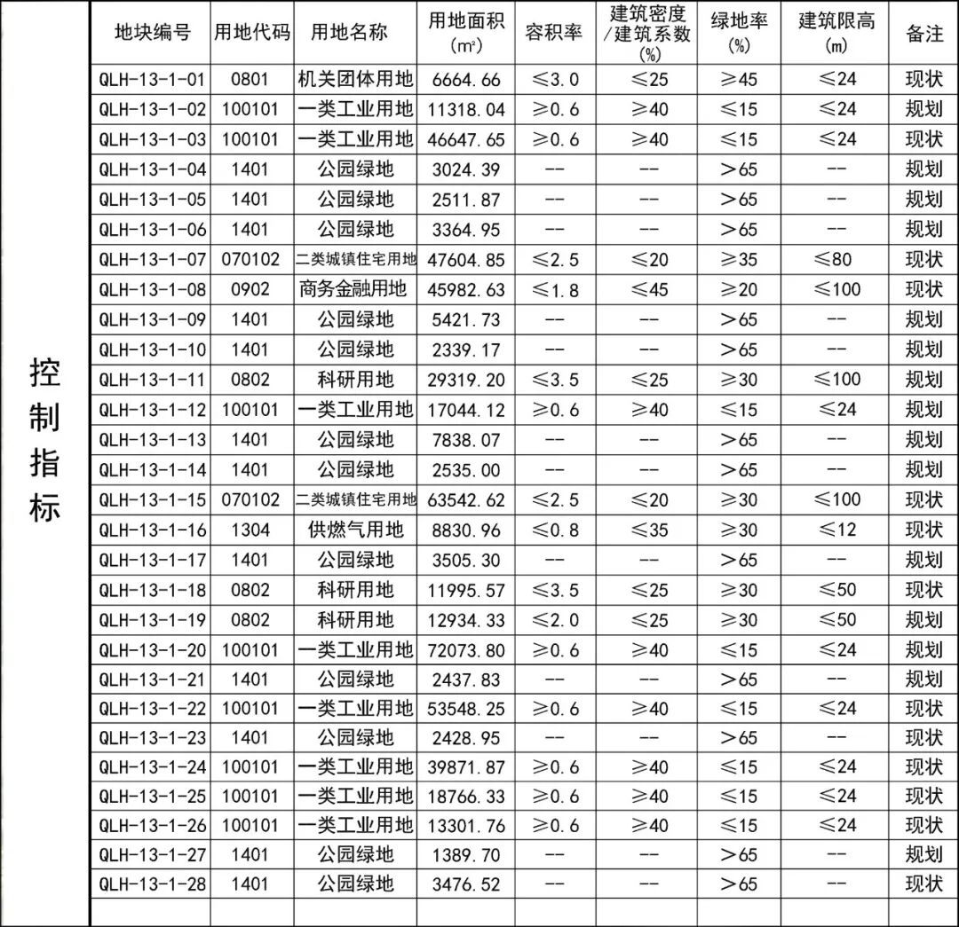 QLH-13单元用地指标 图源@兰州市自然资源局