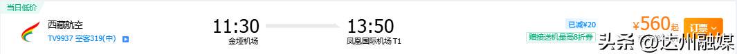 ▷拉萨⇌达州⇌三亚航班号为TV9937,8:40从贡嘎国际机场T3起飞,10:50降落金垭机场;11:30从金垭机场起飞,13:50降落凤凰国际机场T1。
