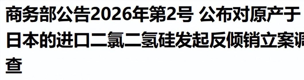 紧跟着1月7日,第2号公告就火速落地了:中方正式对原产于日本的进口二氯二氢硅发起反倾销立案调查。