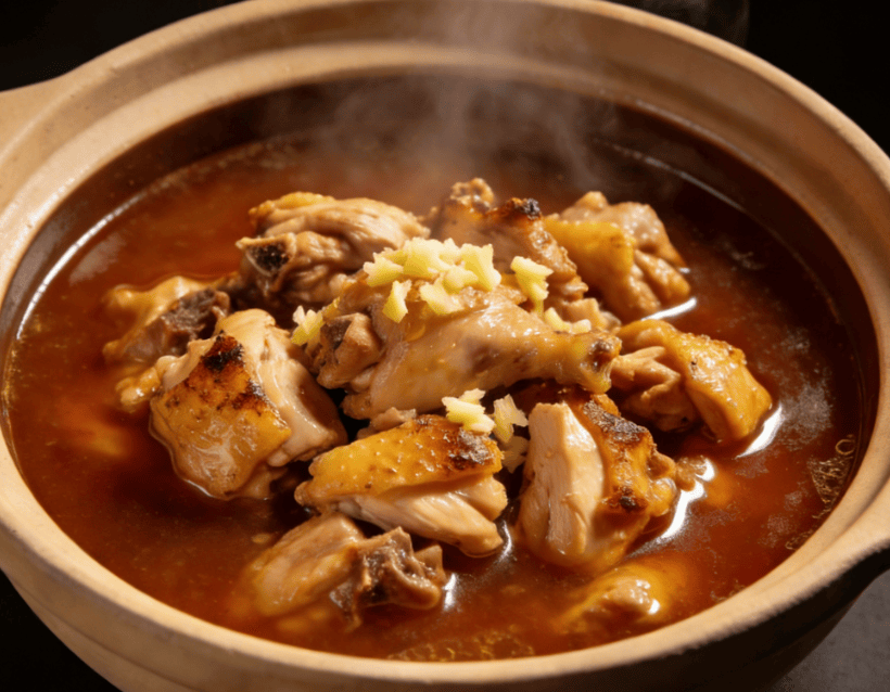 将半只鸡切块炒香,加入姜蓉、半斤娘酒、适量冰糖和水,小火慢炖1小时。娘酒性温,能活血驱寒,配合鸡肉、生姜,共奏温中补阳之效。