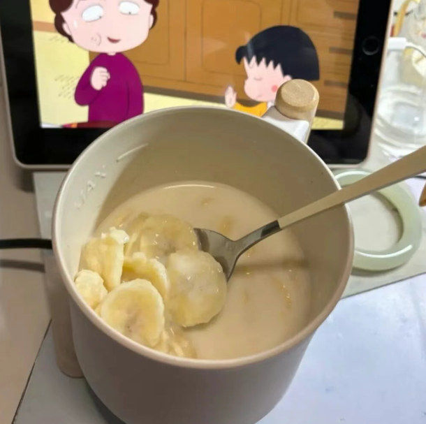 我第一次看到有人用香蕉泡水吃,我之前还以为是黑暗料理。