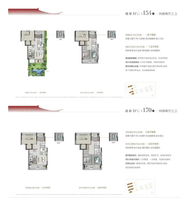 第四,纯粹低密唐风院墅区、前后大露台、独门独户私家花园的天地院墅。