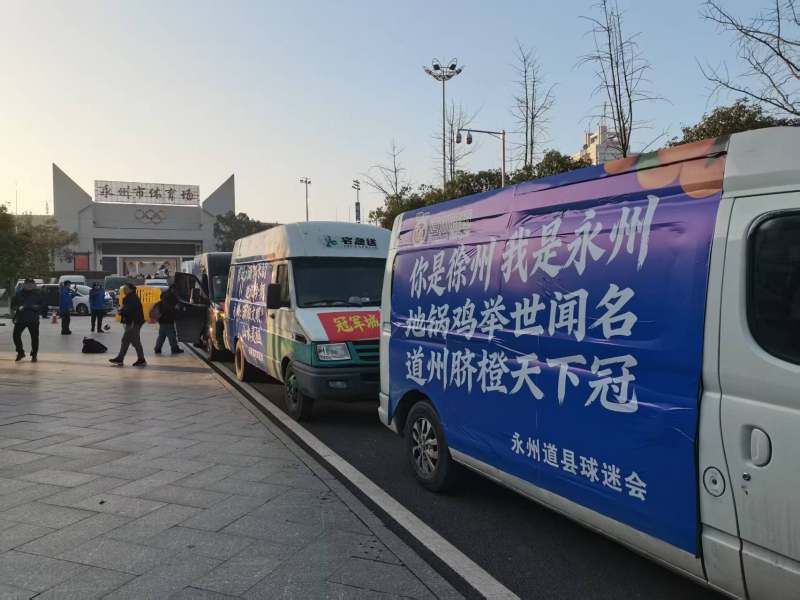 近日,随着苏州、南京、泰州、南通等“十三太保”的江苏球迷到湖南永州打广告祝贺当地勇夺2025年“湘超”(湖南省足球联赛)冠军,永州道县球迷协会于是行动起来准备回礼。1月8日上午,道县球迷协会和道县文旅局一起组织了14辆小车,满载脐橙,奔赴“十三太保”和“十四妹”(湖北黄石)等地,展开了一场双向奔赴的旅程。