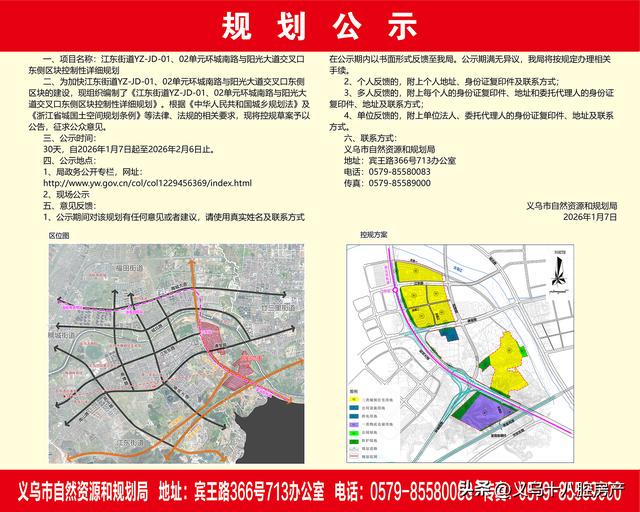 1月7日,江东街道YZ-JD-01、02单元环城南路与阳光大道交叉口东侧区块控制性详细规划进行了公示。
