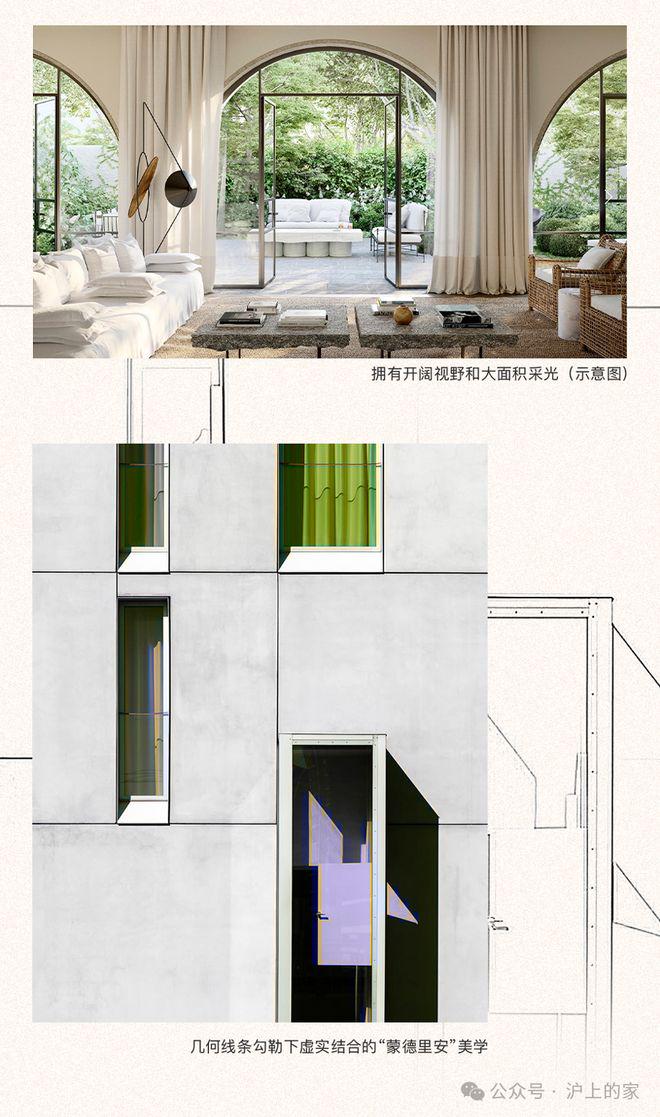 「开阔尺度」:约3.6米层高、超大窗墙比等花园里弄的尺度突破,尽显居者风度。