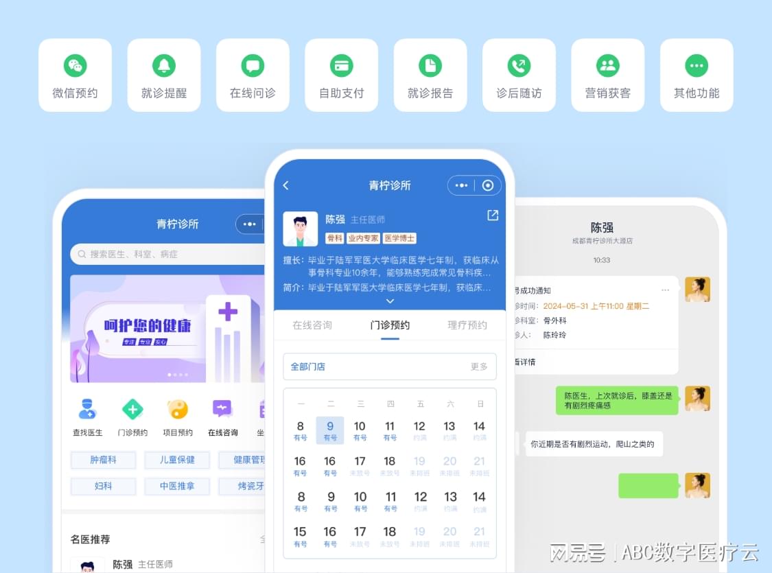 ABC诊所管家内置“微诊所”功能,为您打造全流程的数字化服务闭环: