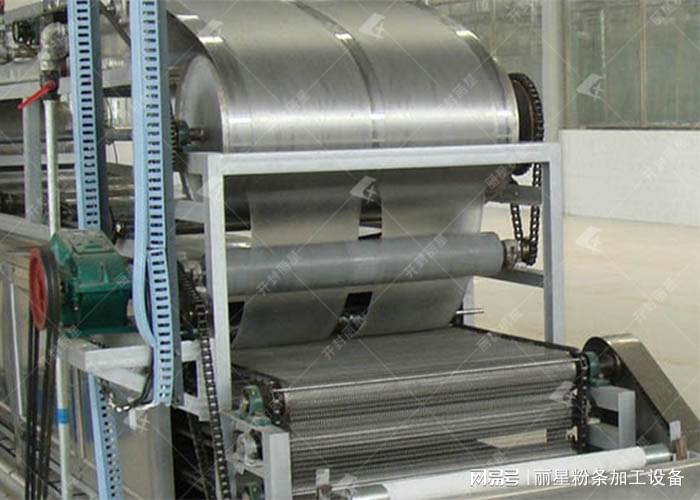 调好的粉浆还要经过真空抽气,这样才能平稳进入蒸制环节,这也是自动化生产的关键。以前传统做法得专人盯着大蒸锅,靠经验把控火候;现在自动化粉皮机不一样,能把粉浆均匀铺开,还能精准控制蒸汽量和蒸制时间。在稳定的蒸汽环境里,流动的粉浆很快就凝固了,变成表面光滑透亮、带着天然红薯香味的湿粉皮。