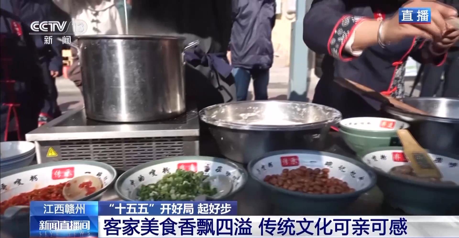 来到阳明路当然少不了要体验美食,这里可谓是赣南风味的集中展示区。在擂茶摊位前,王师傅正在展示这项省级非物质文化遗产的制作技艺,并向记者介绍,客家擂茶不仅要选用上好的茶叶,还要配以芝麻、花生、薄荷等十余种原料,研磨的力度和节奏都很有讲究。擂茶不仅是饮品,更是客家人待客之道的体现。