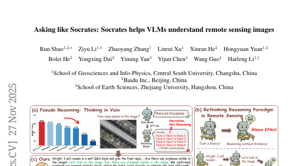 这项由中南大学地球科学与信息物理学院邵润教授团队联合百度公司和浙江大学共同完成的研究发表于2025年11月27日的arXiv预印本平台(编号:arXiv:2511.22396v1),为解决人工智能在遥感图像理解中的"假推理"问题提出了创新性解决方案。有兴趣深入了解的读者可以通过该编号查询完整论文。