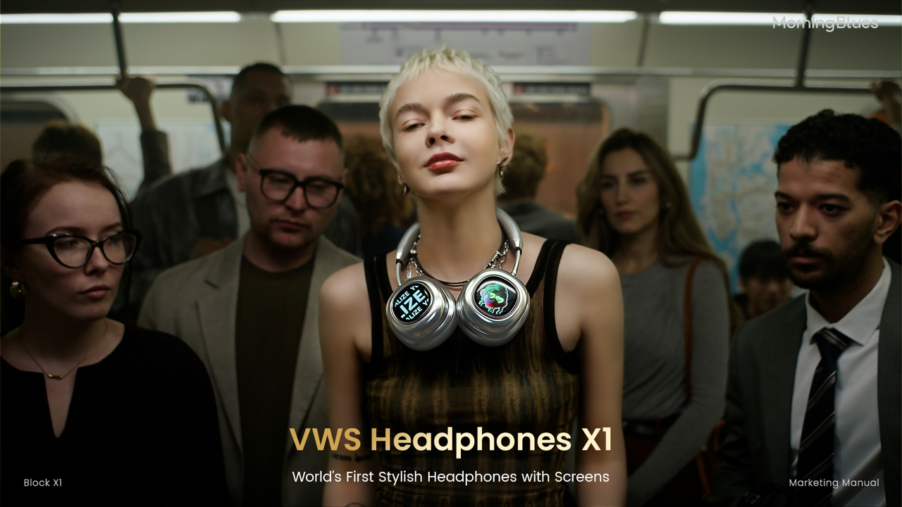 MorningBlues全球首款搭载"灵动屏"的VWS视觉穿戴立体声耳机。吸引目光的,并不只是声音,而是戴在耳边、会"动"的视觉表达。