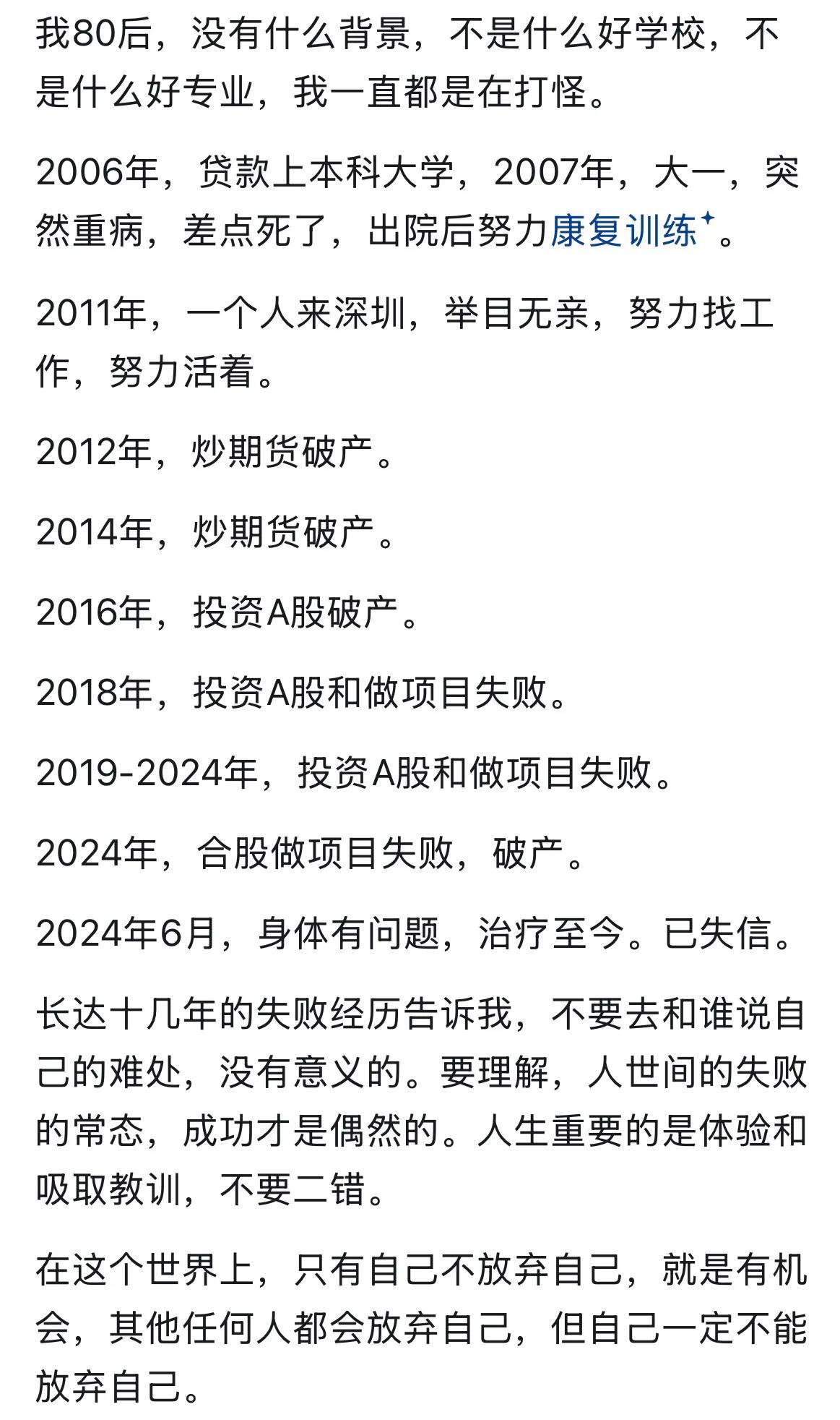 清醒一点,不炒股,慢慢挣钱,或许什么都有了。想走捷径,又不肯承认不是哪块料,哪么越努力越惨。