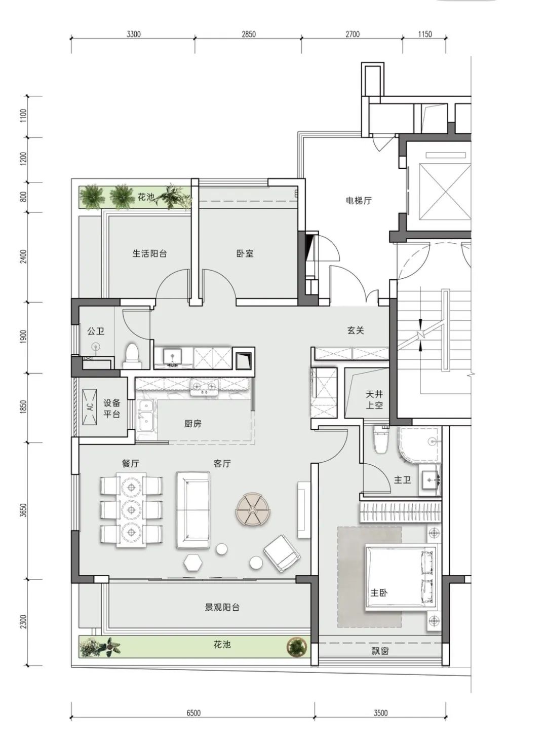 约110㎡边户《独立宽厅 浪漫观景餐厅》两房两厅两卫