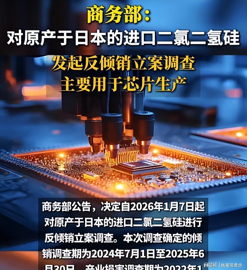 如果说两用物项管控是对日本军工的“精准打击”,那么1月7日启动的二氯二氢硅反倾销调查,就是对日本半导体产业的“致命拿捏”。