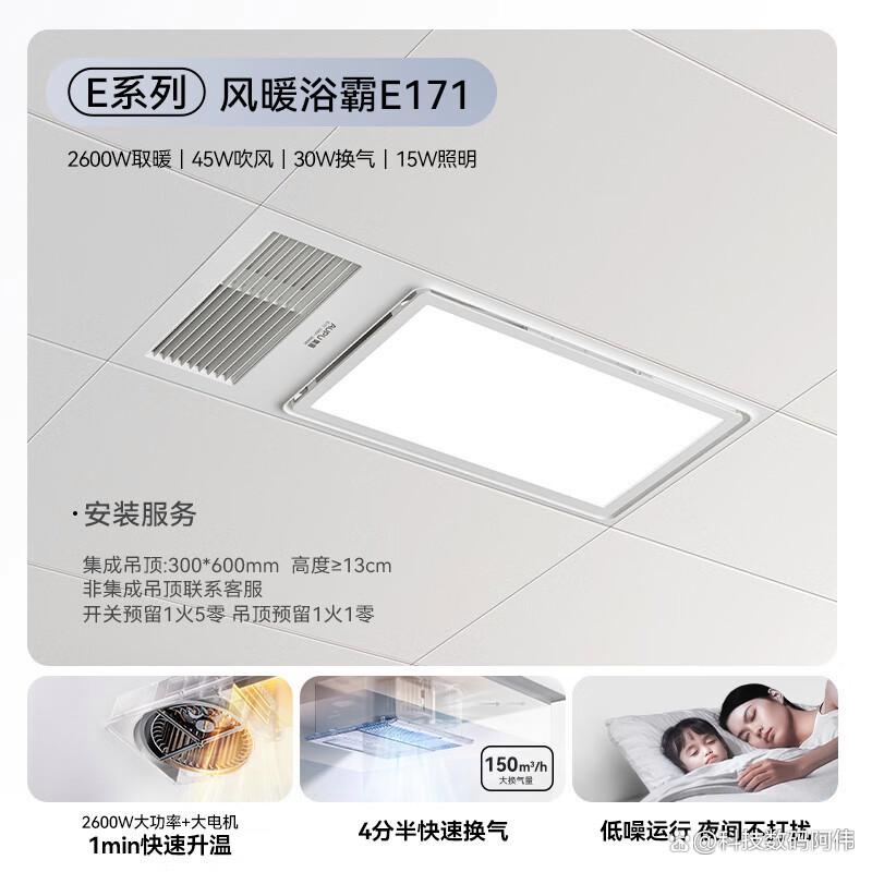 这绝对是预算敏感型用户的福音。欧普这款F157可以说是把价格打到了地板上,活动价经常能做到114.3元左右。它最大的优势就是“便宜且够用”,基础的风暖、换气、照明功能都有。