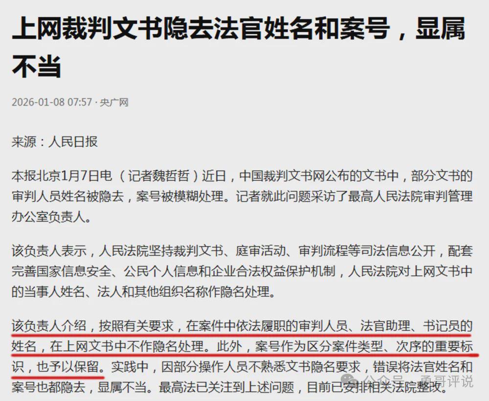 若是法官在判案时秉持公心、依法审判,那何必要刻意隐去自己的姓名,甚至连作为案件标识的案号都遮遮掩掩呢?