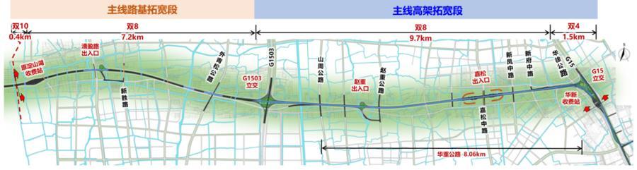 沪常高速连通上海、苏州、无锡和常州,由沪高速S26和苏高速S58两段组成,目前江苏境内为六车道,上海段考虑到通行效率的提升,需要将S26双向六车道改为双向八车道,一方面向西更好地衔接苏锡常三市,另一方面向东高效连接上海市内的快速路网。