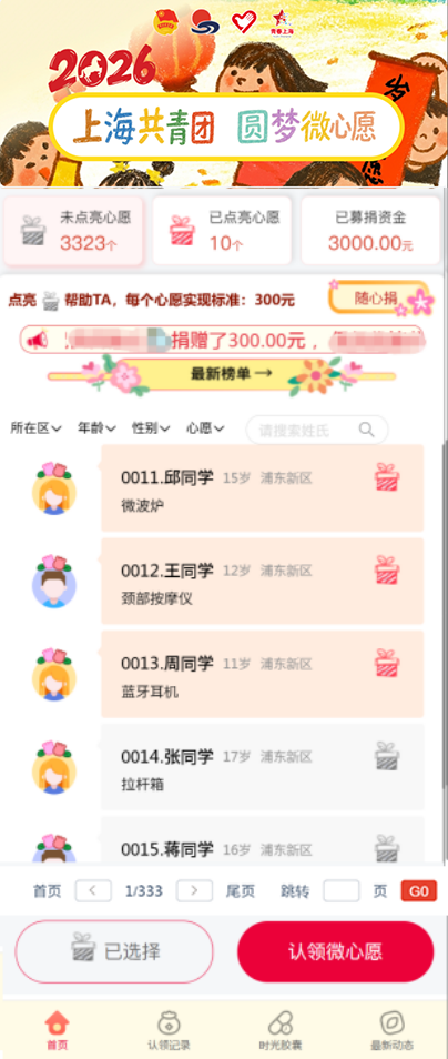 上海共青团圆梦“微心愿”活动