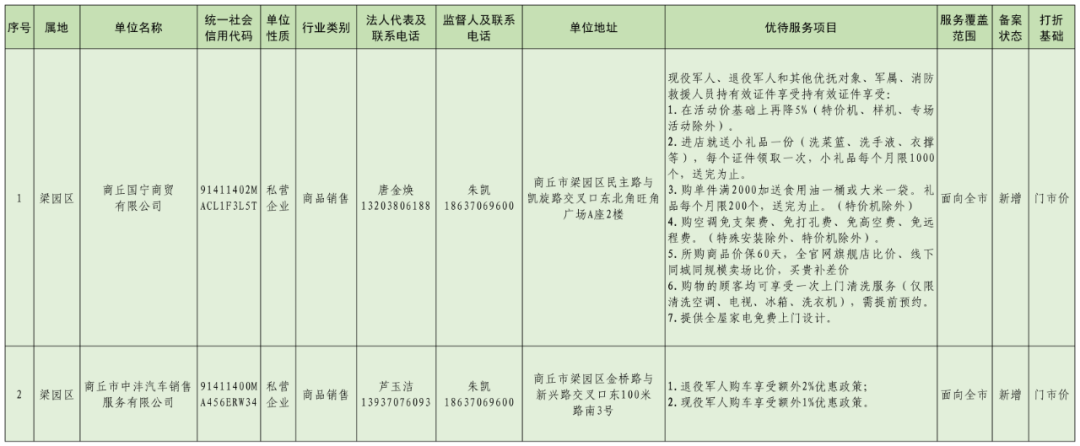 商丘市社会化拥军单位名录