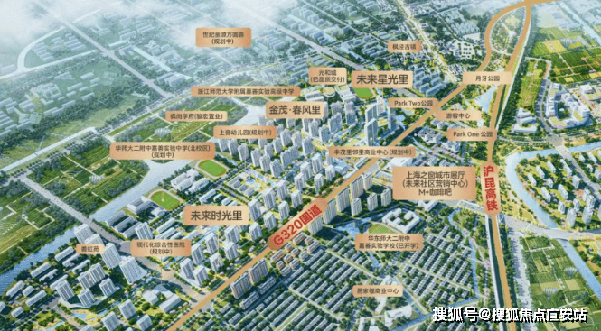 凭借紧邻上海的先天优势,依托“2高3轨2路”立体交通网络(G60沪昆高速、申嘉湖高速;上海示范区线、嘉兴至枫南市域铁路、南枫线;320国道、朱枫公路),实现与上海同城生活圈,美好践行“上海乐业,金茂安居”的都会理想。