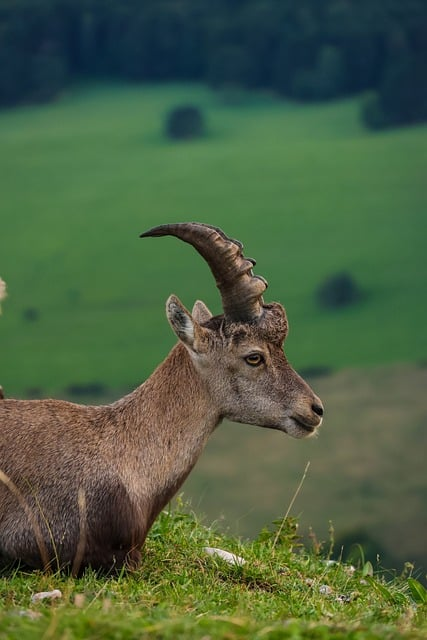 在那遥远的高山之巅,有一种神秘而高贵的生物,它们是大自然的守护者,是高山生态系统的重要组成部分。当我第一次见到这只野生山羊时,它正静静地坐在绿色的草地上,目光深邃而平静,仿佛在思考着什么重要的问题。它那弯曲的角和棕色的毛发,在阳光下显得格外美丽,就像是大自然精心雕琢的艺术品。