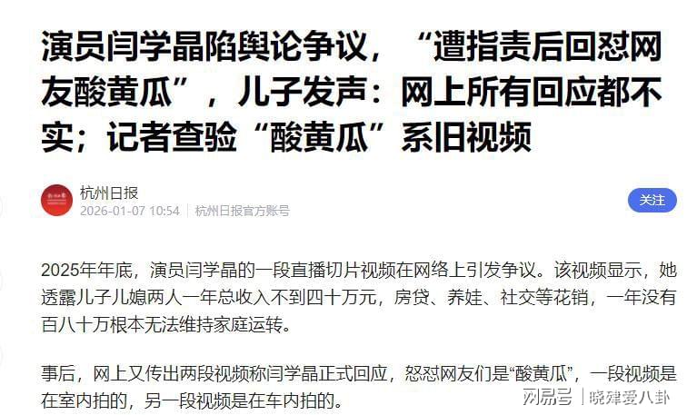 更有意思的是,后来网上还流传出两段视频,说闫学晶回应争议时怼网友是“酸黄瓜”,这让她的口碑雪上加霜。