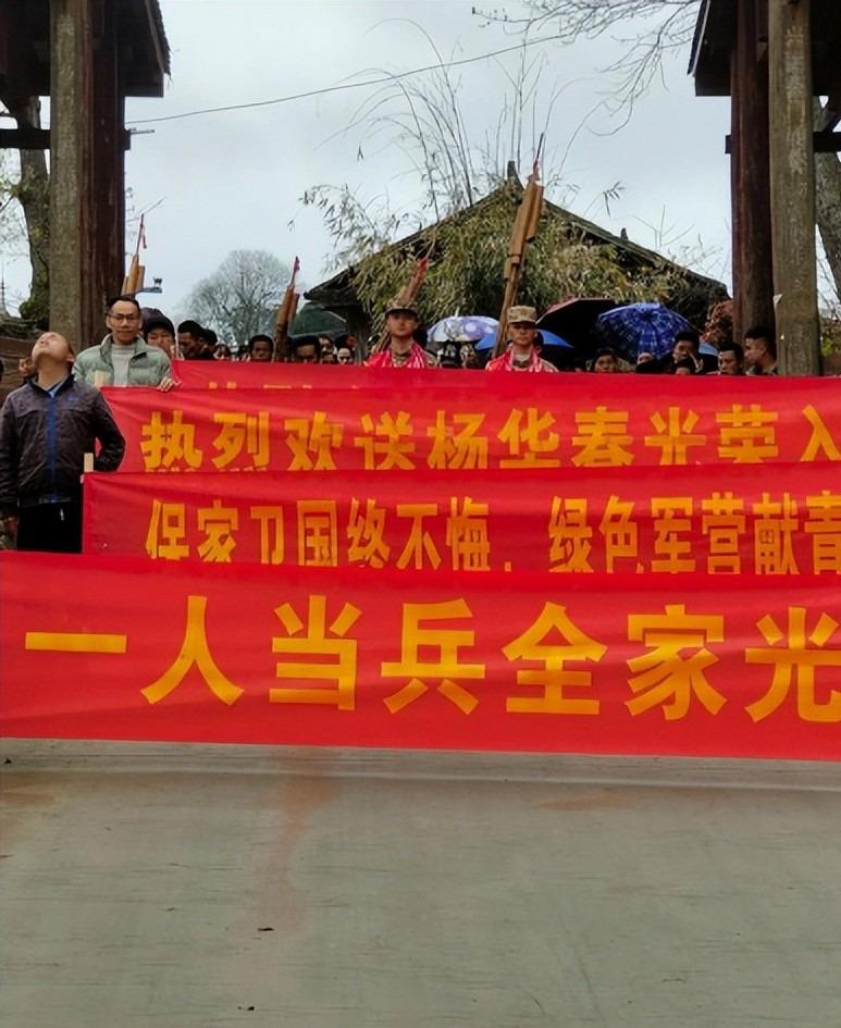 每年到新兵入伍时,现场总会拉起一条横幅,上面写着“一人参军,全家光荣”。