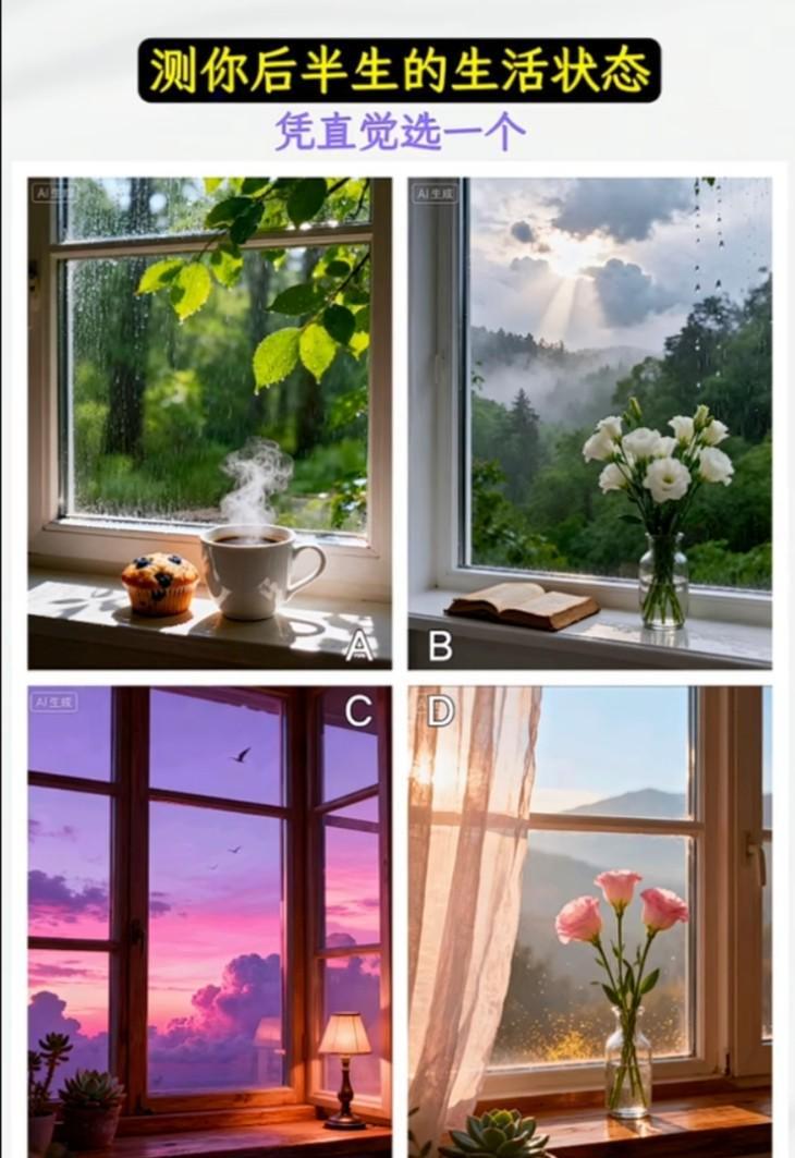 B.通透自在型:你把后半生过成了“减法人生”,卸下过往的压力与执念。心态通透豁达,能坦然面对得失,不被琐事牵绊。有自己的精神寄托,或寄情山水四处旅行,或静心研究小众爱好,活得随心所欲。身边亲友不多但皆真心,经济虽非大富大贵却足够自由,真正做到了心无旁骛、自在逍遥。