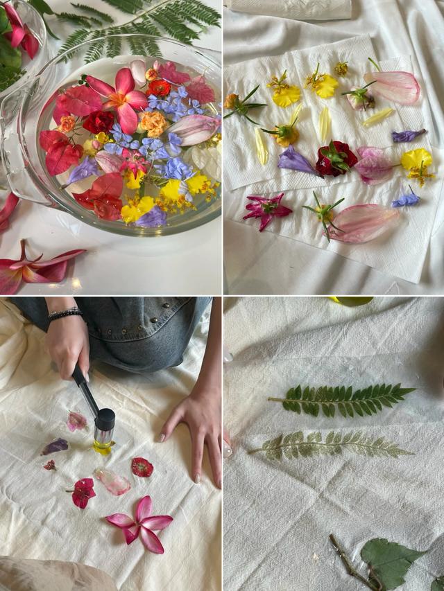 还可以试试更开放的拓印,网上有现成的拓印工具包,里面会配明矾,叶片通过它浸泡、晾干再拓,能稳稳留住植物最精神的模样。