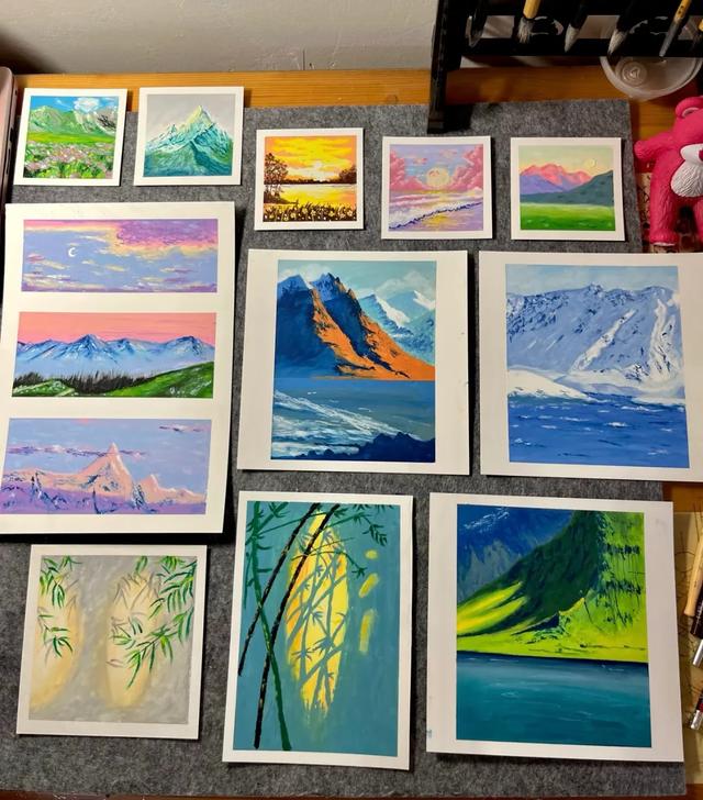 一下子点醒了我!我找了个特别有感觉的雪山油画版,按照教程一步一步来,画完的那一刻,自己都惊了,没想到,我竟然也能拥有一幅像模像样的作品!