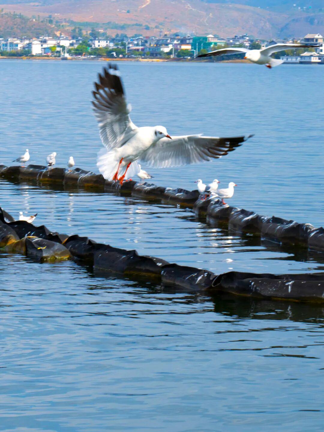 每年11月至次年3月,成千上万只红嘴鸥从西伯利亚飞越大半个中国来到洱海过冬。在洱海生态廊道、龙龛码头、小普陀等地,都可以看到它们翩跹起舞的身影,喂海鸥成为冬日最具互动感的浪漫活动。
