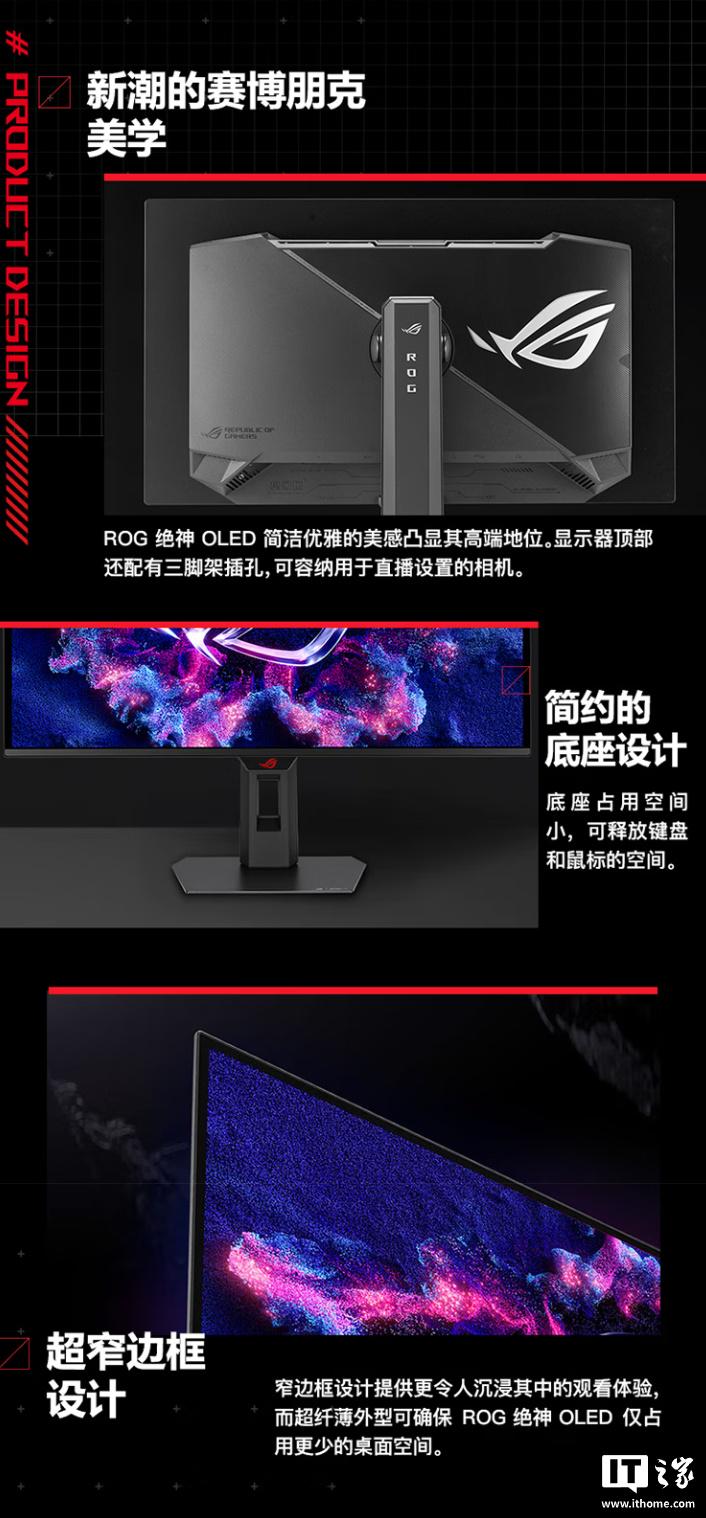 IT之家了解到,这款显示器配备 QD-OLED 面板,对比度可达 1.5M:1,响应时间为 0.03ms,覆盖 99% DCI-P3 色域,出厂 ΔE<2,兼容 HDR 10,带有秒表、定时器、十字准星、FPS 计数器、狙击手等电竞辅助功能。