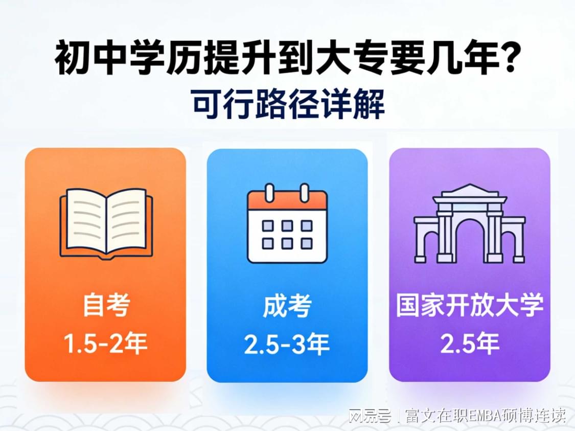 事实上,从目前的成人学历提升体系来看,初中学历不仅可以提升到大专,而且时间并没有想象中那么久。