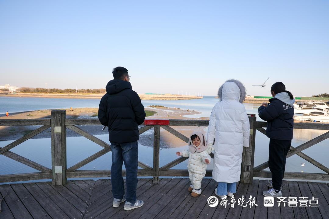 “宝宝快看,海鸥飞过来啦!”家住市区的刘先生一手抱着快两岁的女儿,一手接过妻子递来的鸥粮,小心翼翼地抛向空中。刘先生笑着说:“每年冬天都带家人来看海鸥,今年这儿的鸥群比往年还多,宝宝第一次这么近距离见,高兴得舍不得走。”