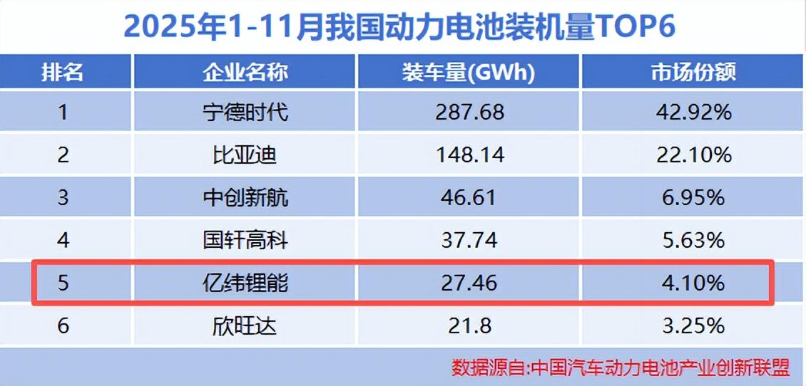 数据显示,2025年1-11月,宁德时代以287.68GWh的装车量占据42.92%的市场份额,比亚迪以148.14GWh紧随其后,市占率22.1%。