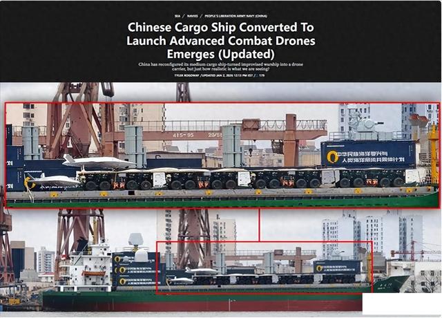 不是因为上面装了什么相控阵雷达或者1130近防炮,而是以前只在科幻片里才敢想的事实现了:用民用货船,搞电磁弹射无人机。