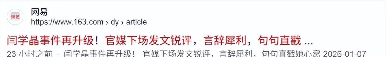 2.网易:闫学晶事件再升级!官媒下场发文锐评,言辞犀利,句句直戳她心窝