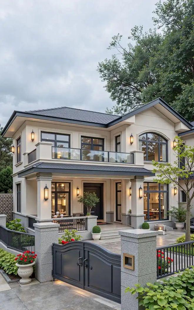 项目的门头采用了古铜铝板+石材打造,但是又不同于建发那种传统中式,融入了白墙灰瓦、劲松流水等江南园林景观元素,整体更加现代。