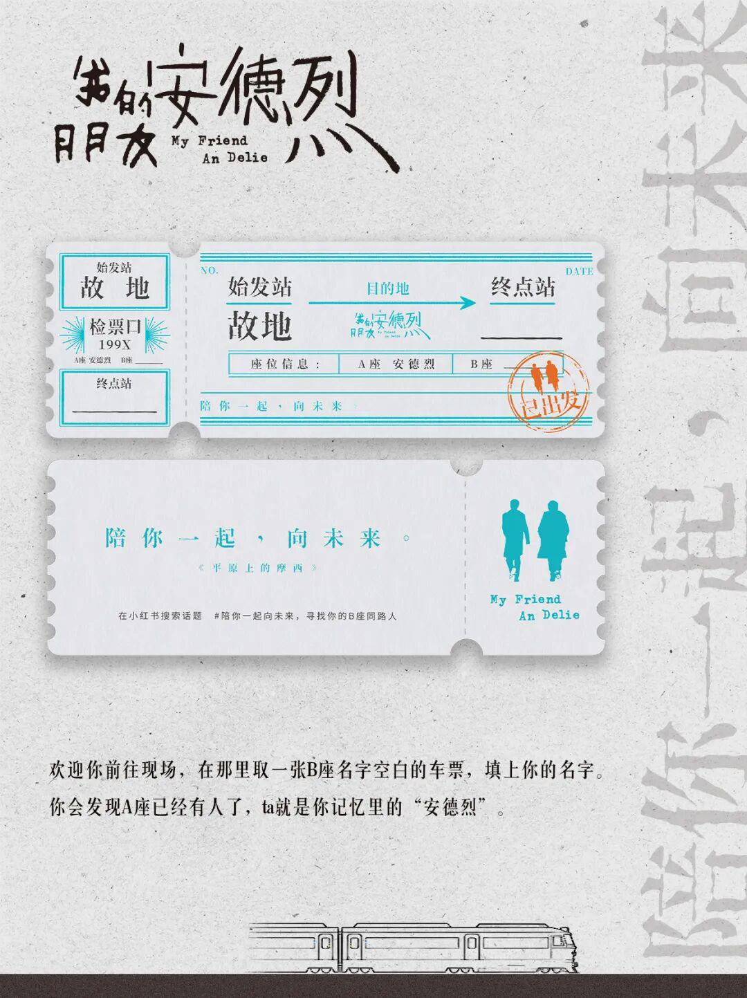 电影上映期间,2026年1月到2月(不同书店开展时间不同),展陈将陆续面向大众开放。我们想招募一批全国各地对此感兴趣的小红书博主前去观展。如果刚好在你所在的城市,欢迎你前往现场,在那里取一张B座名字空白的车票,填上你的名字。