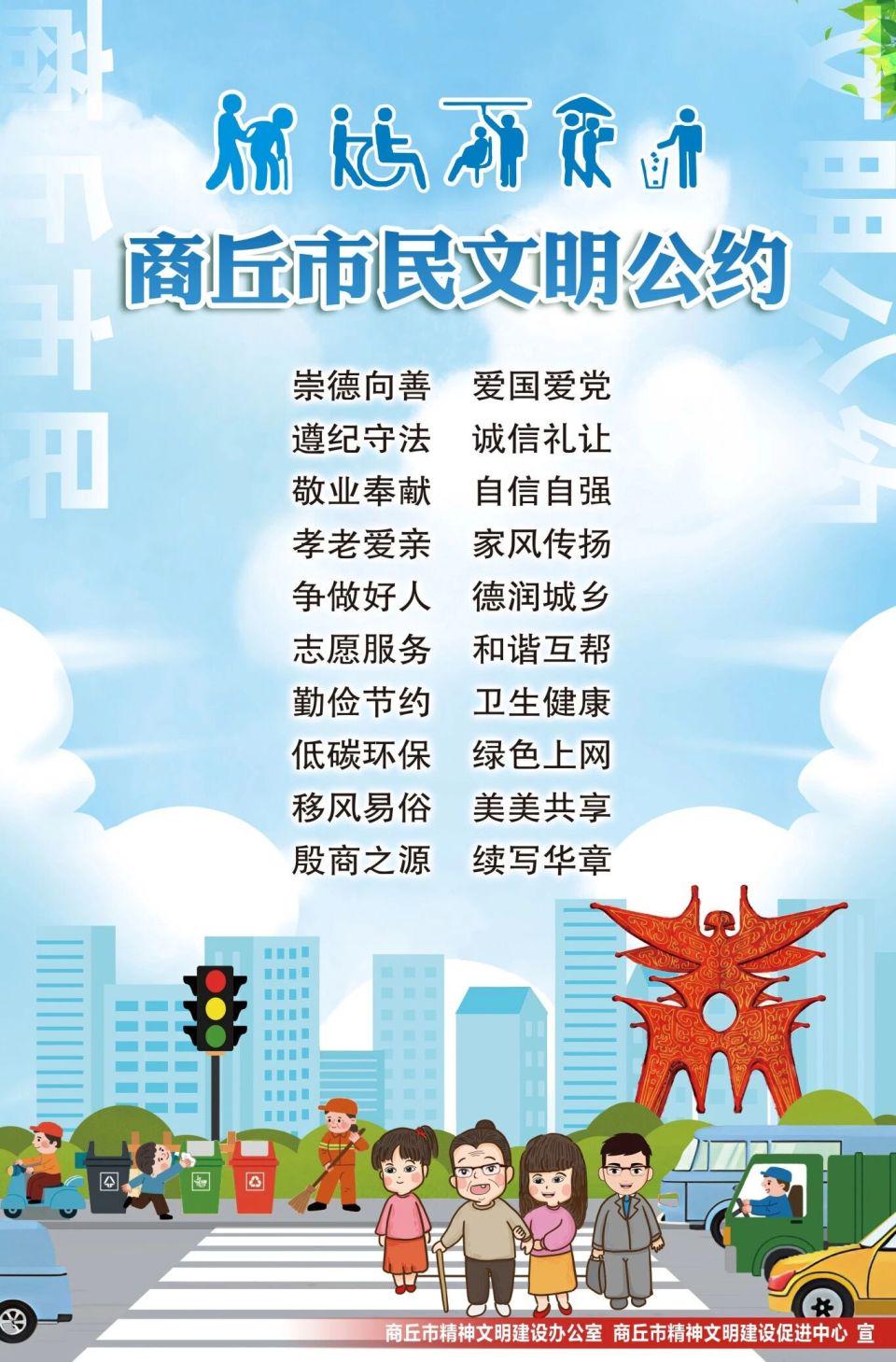 日前,经过广泛征集、专家评审、多方征求意见并报请审定,新版《商丘市民文明公约》向社会发布。该《公约》旨在进一步引导广大市民自觉践行社会主义核心价值观,全面提升城市文明程度和市民文明素养,为我市高质量发展凝聚强大精神力量。