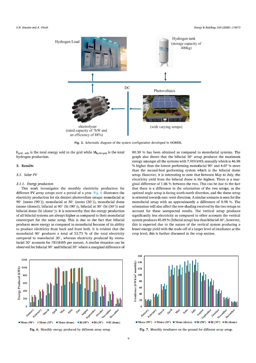 此外,研究还考察了利用农业发电发电为燃料的小型绿色氢气生产,用于氢能车辆和玻璃的可行性,并考虑其经济可行性。结果表明,玻璃所需的氢气每年可达52.56克,理论上双面最大可覆盖距离为30°,约为每天64.23公里。