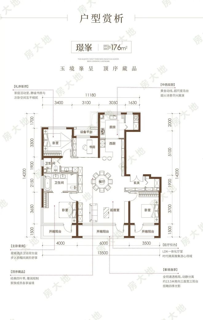 户型刚刚官宣,面积段99-176㎡,全小区只做三、四居,定位很纯粹。