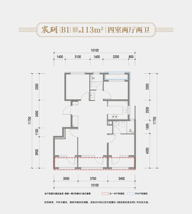 【宸玥】4室2厅2卫 建筑面积约113㎡