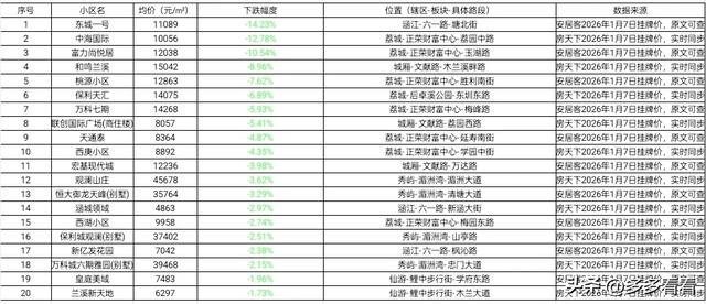 莆田二手房1月跌幅最大的小区排行榜