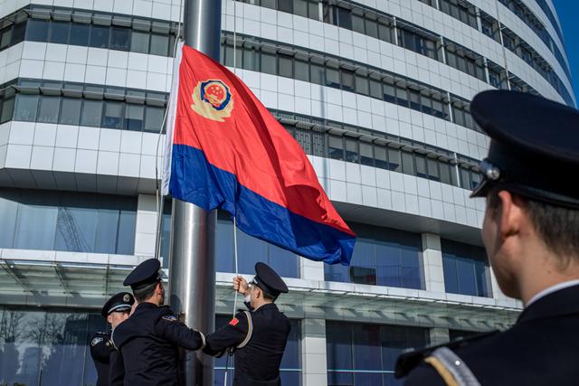 警歌嘹亮,旗帜高扬。1月10日,在第六个中国人民警察节到来之际,上海市公安局闵行分局举行升警旗仪式,民警代表列队向警旗敬礼。