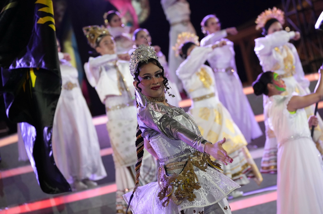 开幕式选址于雅加达兼具文化底蕴与现代设计感的PIK水上综合体,由斯瓦尔加洛卡舞蹈团拉开序幕。60名身着传统服饰的舞者代表印尼各地族群,通过东爪哇甘德龙、巴厘岛勒贡等特色舞蹈,融合迦迪塔、雷奥格等印尼神话元素,展现多元文化交融的独特魅力,而这一“电竞+文化+城市”的融合模式,正是中国电竞出海过程中秉持的本土化发展理念的生动实践。值得一提的是,游戏内诸多源自不同文化的英雄设计,既包括印尼民间传说中的勇士迦多(Gatotkaca),也涵盖嫦娥、孙悟空等中国传统文化符号,让电竞成为跨文化交流的通用语言。