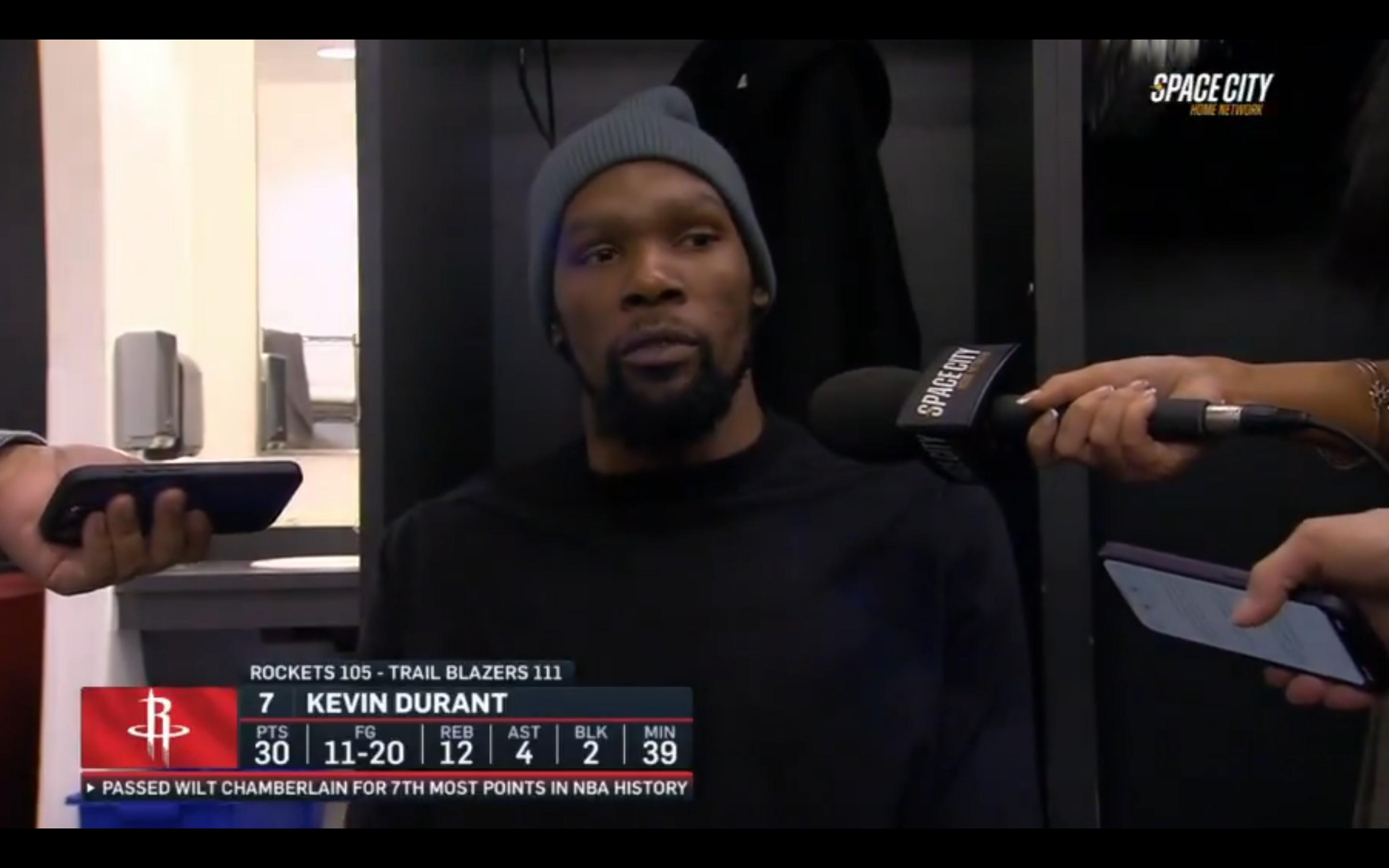 杜兰特谈超越张伯伦:波特兰是有风度的城市,他们在那一刻认可了我
