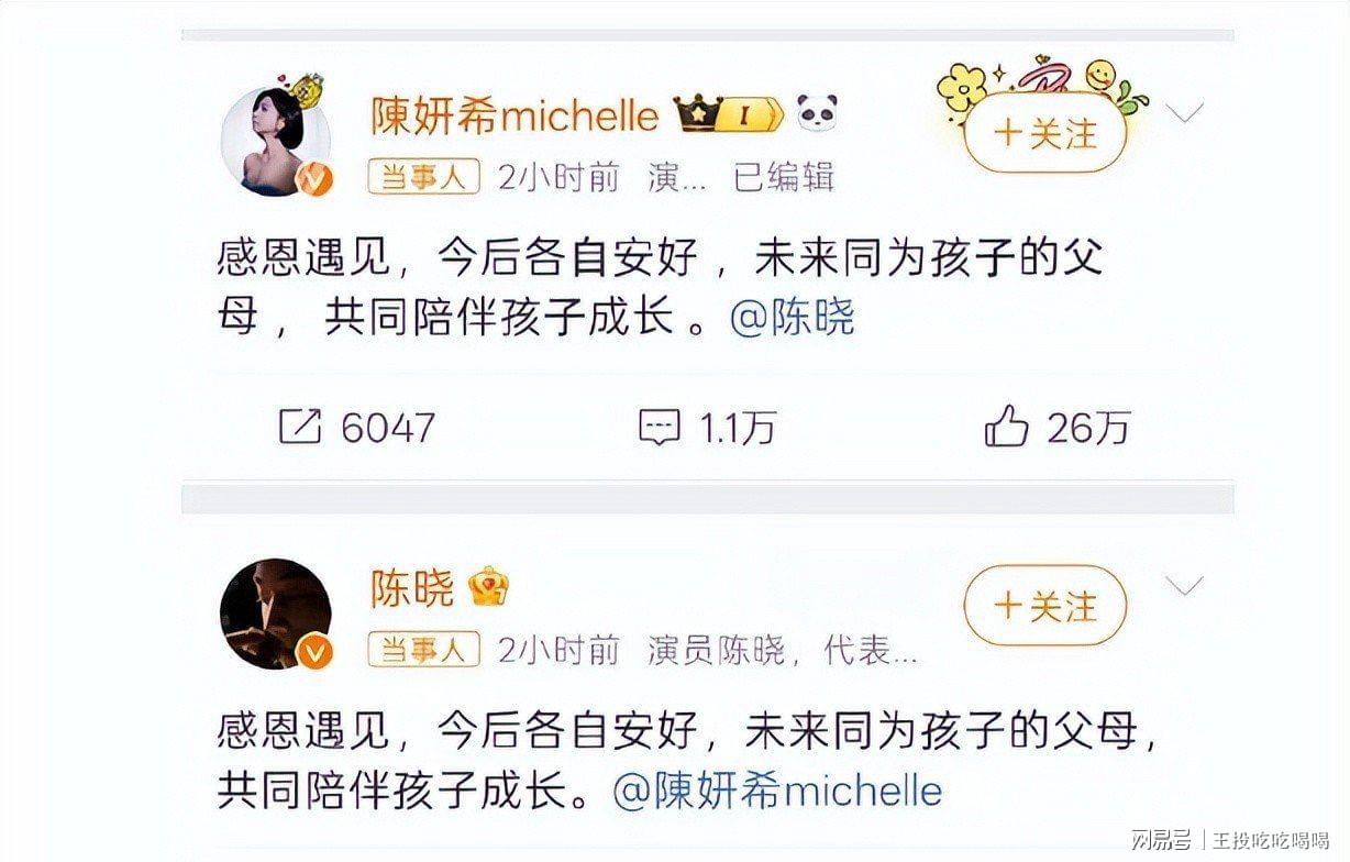 2025年2月18日,双方工作室卡着点同时发布声明。格式都一样,就一句话:“感恩遇见,今后各自安好。”九年婚姻,到此剧终。